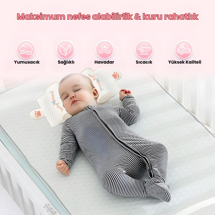 Eşsiz tasarımı ve nefes alan premium kumaşıyla bebeğinizin başını nazikçe korur, uykusunu gerçek bir konfora dönüştürür.